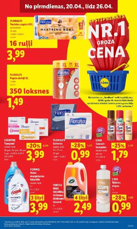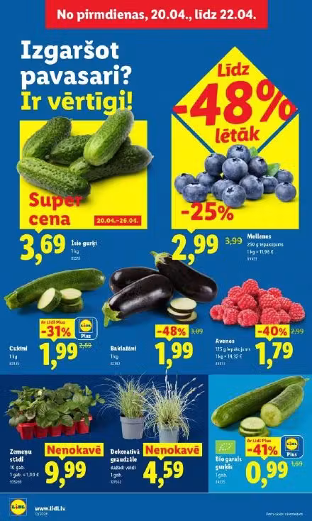Šajā Lidl Latvia akciju bukletā Nr. 1 atradīsiet aktuālās veikala akcijas un atlasītus piedāvājumus. Buklets ir spēkā no 2026-04-20 līdz 2026-04-26, tāpēc vienuviet var ātri pārskatīt aktuālās šī perioda atlaides.